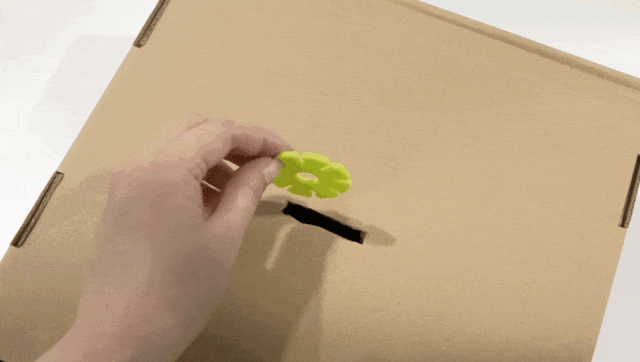 1、将小型快递盒挖洞,刚好能放进雪花片即可;