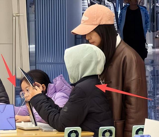 照片里能看到,大儿子霍中曦手里拿着一部新手机,凑到郭晶晶跟前给她看,小女儿则好奇地趴在柜台边,戴着的眼镜看着度数就不低。